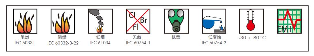 应用范围MPRXCX 331 系列电缆可用于各种类型轮船及露天甲板上的固定敷设场合和有防火要求的安全线路中,具体安装遵循标准IEC 60092-352 的规定。该电缆高性能的编织屏蔽可削减在电气安装中的电磁干扰。该系列电缆还能够满足标准IEC60331 的防火、IEC 60332-3-22 的成束燃烧及SOLAS 等要求。此外,该系列电缆采用的所有材料均为低烟无卤材料,这确保了电缆在着火状态下不会释放太多的腐蚀性气体和毒性气体。因此,该系列电缆非常适合安装在人员集中的客船上。