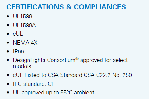 Locations requiring continuous and consistent light
